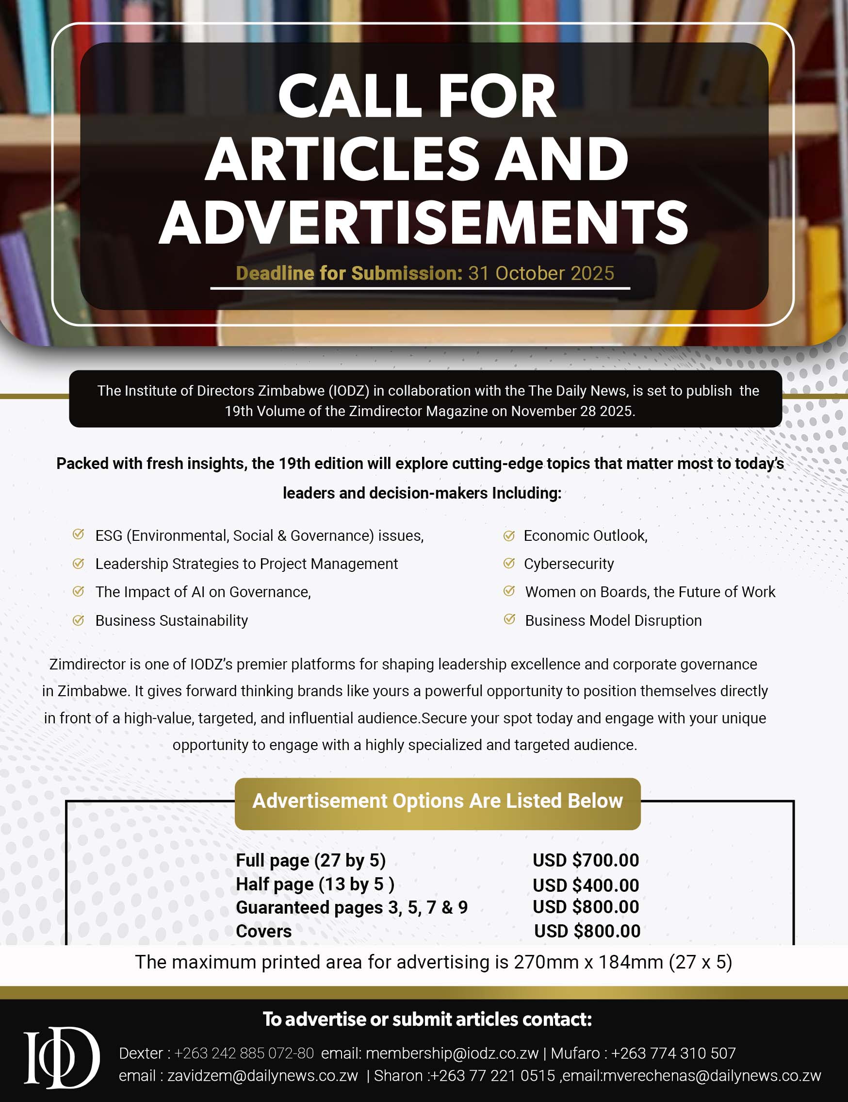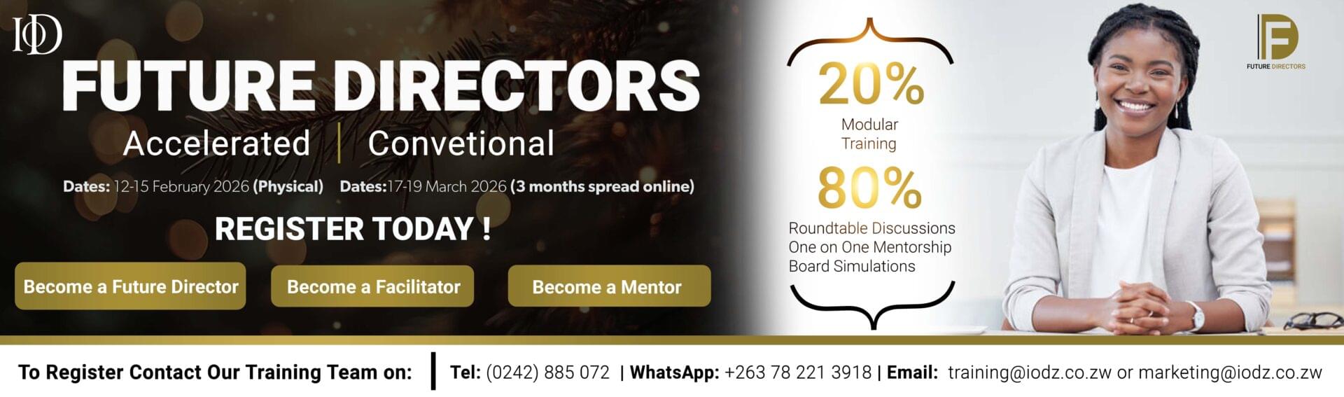 The Institute of Directors Zimbabwe is a non-profit membership-based association for professional leaders which has a mandate is to support businesses and the people who run them. The IoDZ does this mainly through training.